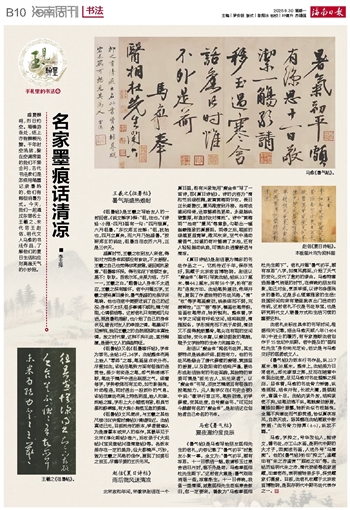 ■ 李玉萍盛夏蝉鸣,烈日灼空。笔锋游走处,纸上亦有蝉嘶光舞。千年时空流转,躲在空调房里的我们不禁会问,古代书法家们是怎样用笔墨记录暑热的,他们有哪些消暑方式。今天,我们一起通过东晋名士王羲之、宋代帝王赵佶、明代文人马愈的书法作品,了解他们的夏日生活和应对高温天气的小妙招。