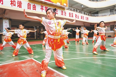 “近年来,学校在课后延时服务中增设武术课,分为托管班、提高班、啦啦操班,每学期报名人数高达500多人。许多学生习武后,精神面貌焕然一新。”林濠鹰说,通过校园课后延时服务课程,一些学武的好苗子脱颖而出,被选拔到学校武术队,接受更系统的训练。