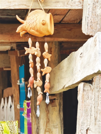过去,吊脚楼一层多用于圈养禽畜、堆放杂物,现在更像一个开放的客厅,陈列着楼主独有的生活态度和审美情趣。时间流速在这里变慢,有人在这摆上茶台,往来客人若有闲情,大可走近饮茶闲聊;有人在这挂起吊床,伴着家中老狗偷闲乘凉;也有人支起摊位,田间玉米、院中木瓜随机销售……