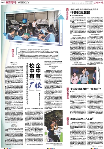 王斌介绍,接下来,该校将对2000多平方米的实训场地进行改造升级,以适应产教融合“校中厂”工学一体化人才培养模式的需要。同时,重点探索“校中厂”实践课堂和“企中校”岗位课堂教学,提高两种课堂教学实效;理顺校企导师互评机制,建设一支既懂教学、又能生产的师资队伍。