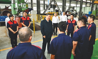 7月7日至8日,中共中央总书记、国家主席、中央军委主席习近平在山西考察。这是7日下午,习近平在阳泉阀门股份有限公司考察时,同企业员工亲切交流。新华社记者 燕雁 摄