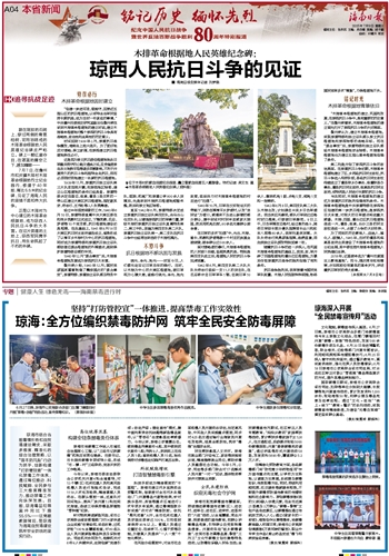 7月7日,在儋州市和庆镇木排村木排革命根据地烈士纪念园内,修建于40年前、高达6.6米的纪念碑,见证了海南人民的坚强不屈和伟大抗争。