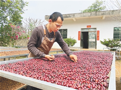 咖啡种植户晾晒咖啡豆。海南日报全媒体记者 高懿 摄