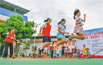 在湖南省永州市道县仙子脚镇黄田岗村,孩子们在跳绳。本栏图片均由新华社发