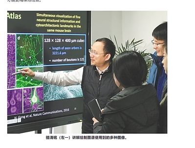 骆清铭(左一)讲解绘制图谱时使用的多种图像。