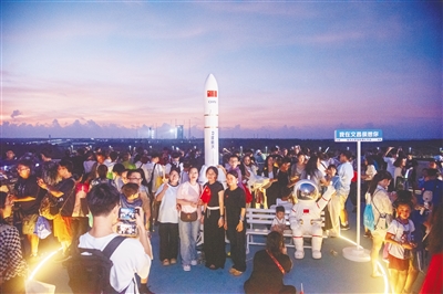 凌晨6时,火箭升空的尾迹在天空还未消散,“发射成功”的消息已在人群中传播开来。朝霞里,人们欢欣鼓舞,纷纷打卡留影。