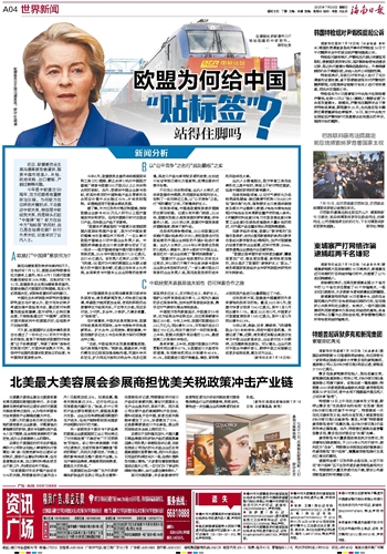 近日,欧盟委员会主席冯德莱恩发表演讲,指责中国市场准入、补贴、政府采购、出口管制、产能过剩等问题。今年是中欧建交50周年,双方近期将有重要政治议程。为何欧方在这样的关键时点,不去推动中欧关系,特别是中欧经贸关系,而是转头打起“中国牌”呢?欧方在给中方“贴标签”的同时,自己是否站得住脚?针对外界关切,记者采访了业内人士。