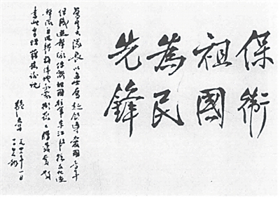邹韬奋赠给广东人民抗日游击队曾生司令员的题词。