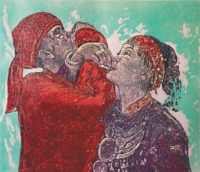林文光版画作品《交杯酒》2024年获第八届省美展银奖。