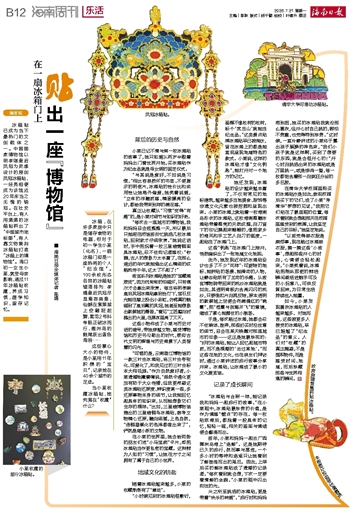 冰箱贴已成为当下最热门的文创载体之一。中国国家博物馆以明孝端皇后凤冠为灵感设计的原创凤冠冰箱贴,一经亮相便成为该馆近20年来当之无愧的销冠。在社交平台上,有人用满满的冰箱贴拼出了“中国城市地标图”,有人靠文物复刻冰箱贴打造“冰箱上的博物馆”。海口初一女生小莱,就受母亲影响,透过11年冰箱贴收藏,养成习惯,趣学知识,留存记忆。