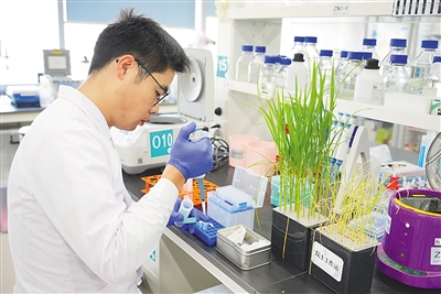 在三亚崖州区的中国农业科学院南繁研究院,年轻科研人员进行水稻实验。海南日报全媒体记者 张茂 摄