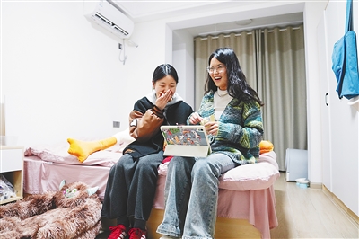 在常州市的一处人才社区,居民在房间内看剧休闲。