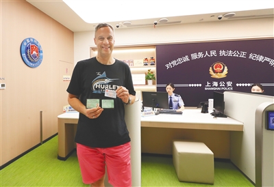 ① 近日,上海一名外籍人士展示办理完成的永居证和驾驶证。