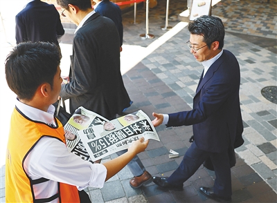 7月23日,在日本东京街头,一名工作人员分发报道美国与日本达成贸易协议的《读卖新闻》特刊。新华社/路透