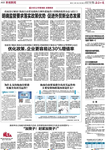 第三,这是深化重点领域改革,构建高水平社会主义市场经济体制的时代需要。支持海南自由贸易港实施全岛封关运作,正是以高水平开放倒逼深层次改革,以深层次改革促进高质量发展,特别是在贸易投资、财税金融、政府监管等领域深化制度创新和模式探索,着力打破现有观念束缚、政策障碍和利益藩篱,为构建高水平社会主义市场经济体制探索新路径、积累新经验。