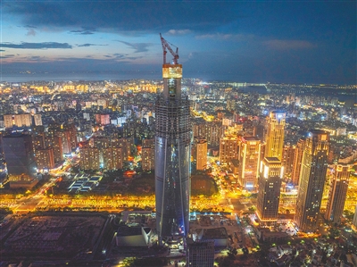 7月25日,由海南控股旗下海南机场集团投资、中建三局承建的海南中心项目挑灯“夜战”,工人在高楼上加紧施工。目前,该项目主塔楼核心筒施工至79层,高度已达336.5米,正向着主塔楼428米的设计高度发起“百米冲刺”。据介绍,海南中心项目建成后将重点吸引世界500强、外向型企业、金融机构及驻华涉外机构入驻,服务海南自贸港建设。