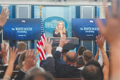 在美国首都华盛顿白宫,白宫新闻发言人卡罗琳·莱维特就关税问题接受记者提问(资料图)。新华社发