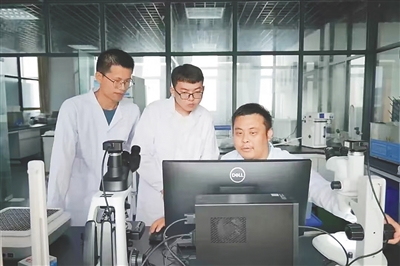 赵鹏(右一)带领学生处理数据。
