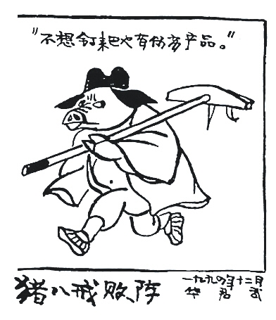 晚年的华君武一直笔耕不辍,创作了大量以猪八戒为主角的漫画,讽刺社会上的不正之风和不文明的现象。他坦言:“八戒既可爱又有那么一点俗气,七情六欲极为丰富……现在社会上猪八戒式的人物还不少,借八戒喻众生相是最妙不过的了。”例如,他以《猪八戒败阵》针砭假冒伪劣产品泛滥现象,以《猪八戒开减肥中心》揭露虚假广告,以《猪八戒下海叙旧》讽刺人际攀附现象,既幽默又深刻。此外,他还创作了《笑林广告》《东郭寓言》等系列漫画。