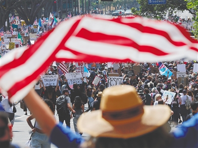 自4月以来,多轮抗议浪潮席卷全美,凸显民众对政府的愤怒与失望。7月4日美国“独立日”当天,从芝加哥到洛杉矶,从弗吉尼亚州到南达科他州再到俄勒冈州,美国多地举行抗议活动。射向人群的催泪瓦斯、骑马持棍执法的警察、高举的抗议标语和讽刺人偶……这些场面再度映照“美国反对美国”的对立与撕裂。