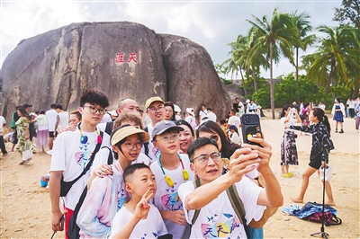 7月28日,三亚市天涯海角游览区,游客打卡拍照。