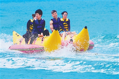近日,三亚市亚龙湾旅游度假区,游客体验水上游玩项目。