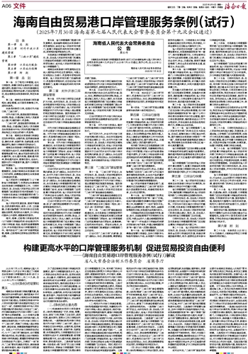 为了适应海南自贸港口岸建设和发展需求,提升口岸管理和服务水平,省人大常委会依法制定《条例》,坚持系统观念、突出重点、问题导向,紧扣海南自贸港实际和封关运作需要,主动对接国际高标准经贸规则,推动建设更高水平开放型经济新体制,对口岸的建设管理、运行服务保障作出系统性规定,围绕口岸科学规划、合理布局、协同开放及规范管理、服务提升、风险防范等方面完善制度设计,确保口岸营商环境优化、安全高效运行和国际贸易自由便利。