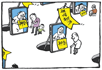 打开手机,养生“爆款”席卷屏幕,“神医”故事层出不穷,“网红医生”侃侃而谈……据法治日报报道,虚构的“祖传秘方”、跨专业输出的伪科学、披着白大褂的售货员、利用AI批量生产的同质化文案——这些乱象不仅扭曲医学伦理,更直接威胁公众健康安全。公众健康事关重大,可隔着屏幕,一个个“神医”摆起了“道场”,为了流量竟以假乱真、信口开河,置公众健康于何地?移动互联下,医疗科普本应更快抵达受众、更好服务大众,却被无底线的流量裹挟,构成了“健康陷阱”。对这种网络医疗乱象,不管是平台,还是监管部门,都应从严发力,既要做好源头防控,也要加强过程监管,还要强化末端惩戒,做好全链条监管。