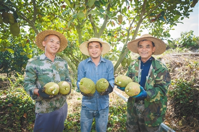 该基地于2020年启动建设,历经5年,如今榴莲蜜果树长势喜人,果品质量高、肉厚、汁足、浓香,今年集中成熟上市,总挂果量预计突破4万斤。