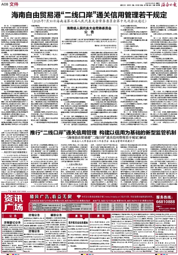 第二条 对经“二线口岸”从海南自由贸易港进入中华人民共和国关境内其他地区的货物、物品、交通运输工具相关的经营主体和个人的信用管理,适用本规定。