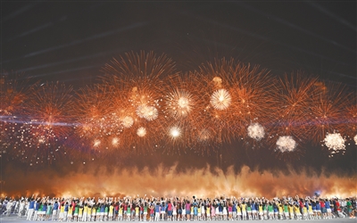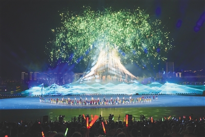随后,在“天府之檐”下,文体表演《锦绣之韵》、主题曲表演《友爱之声》接续上演,将运动项目与中华文化、巴蜀元素有机结合,展示出“运动无限 气象万千”的主题。在万众期待下,世运圣火在湖中点燃,以水火相生的科技创新美学,向全世界传递梦想之光。