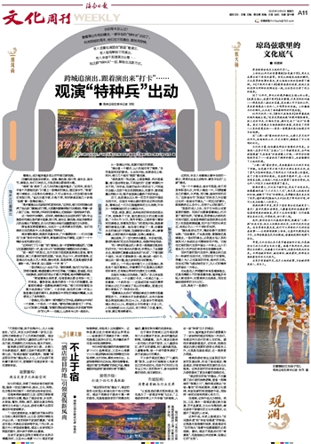 “海南‘卷’起来了,这几年好演出越来越多。”这两年,梁佳几乎每个月都能在家门口看上一场精彩的演出,澄迈音乐节、“断眉”海口演唱会、三亚周杰伦演唱会、久石让音乐会、《芝加哥》音乐剧还有脱口秀。“省内交通方便,价格不贵,有时候甚至能几十块钱‘捡漏’看一场精彩演出。”