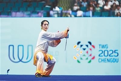 8月8日,卢卓灵在太极剑比赛中。新华社发