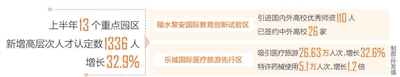 此外,上半年13个重点园区新增高层次人才认定数1336人,增长32.9%,为园区高质量发展注入动能。陵水黎安国际教育创新试验区引进国内外高校优秀师资110人,增长57.1%;已签约中外高校26家,增长18.2%,教育开放格局逐步形成。乐城国际医疗旅游先行区吸引医疗旅游人次26.63万,增长32.6%;特许药械使用5.1万人次,增长1.2倍,医疗旅游品牌影响力持续扩大。