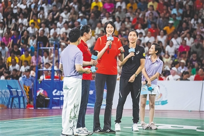 本报文城8月10日电(海南日报全媒体记者刘冀冀)8月10日晚,文昌市文城镇玉阳公园沸腾了!海南“村VA”冠军之夜火热启幕,中国女排前队长孙玥、奥运冠军赵蕊蕊惊喜现身,点燃全场球迷热情。“一颗小小的排球,有无限种可能。”置身于震耳欲聋的声浪中,赵蕊蕊深受感染,她手持助威拍,随着暖场音乐摇摆,“这不仅仅是一场比赛,更是文化的交流、人与人情感的碰撞。”