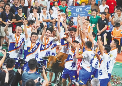 8月9日晚,东郊镇火箭队和紫贝文城战队进行季军争夺战。经过激烈比拼,东郊队3:1战胜文城队,获得2025海南“村VA”季军。