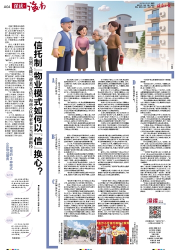 上个月,继西苑小区之后,海口市美兰区海岸金沙小区成为海口首个、海南第二个引入“信托制”物业的小区。该模式与传统物业模式有何不同?能为破解小区管理难题提供哪些新思路?能否在海南更多小区铺开?海南日报全媒体记者进行了深入走访。