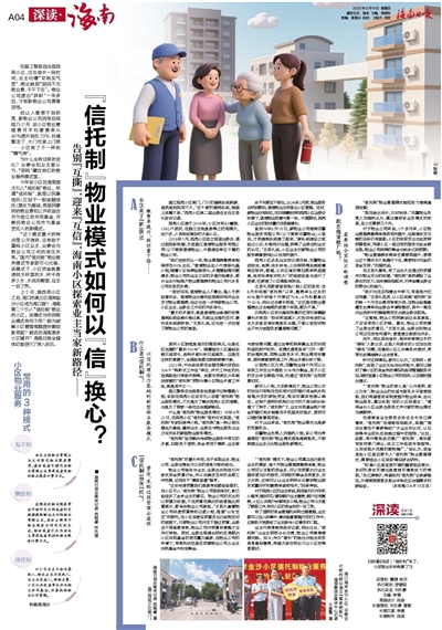 羽馨物业负责人刘维杭介绍,该公司也希望借助“信托制”物业模式落地海南契机,不断探索企业多元化物业服务新模式。