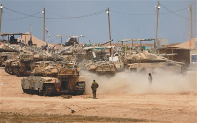 这是8月12日从以色列与加沙地带边境以方一侧拍摄的待命军车。 新华社/路透