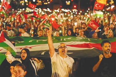 八月九日,土耳其民众在伊斯坦布尔集会声援加沙。新华社/美联