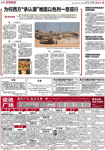 分析人士认为,上述西方国家表态承认巴勒斯坦国,顺应了国际社会反对以色列暴行、支持“两国方案”的大势,具有积极意义。