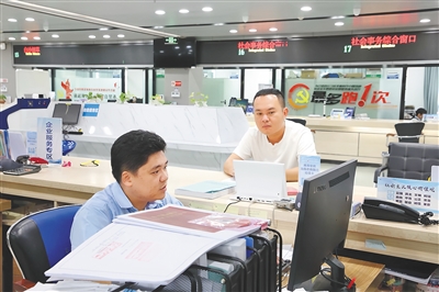 近日,在白沙政务服务大厅,工作人员为项目办理“多证联发”并联审批事项。