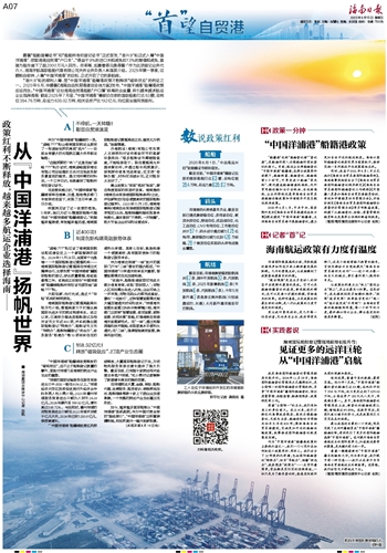 最让我感到自豪的一个突破,则是实现了允许外籍船员在“中国洋浦港”籍船舶任职,有效吸引了更多的国际船舶选择“中国洋浦港”。这对提升海南自贸港航运业的国际竞争力,加速航运要素的聚集,是关键而有力的一步。