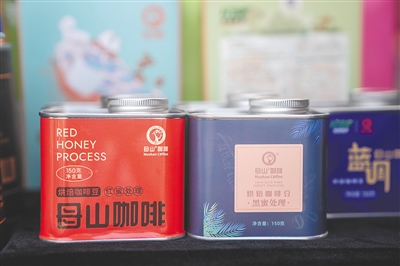 7月14日,在首届骑楼老街咖啡文化节上的母山咖啡产品。