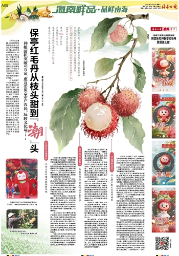 当前,保亭正在推动红毛丹产业从卖原料向卖加工产品、卖“品牌”转变,打造红毛丹文化丰收季活动、开发观光休闲游、度假养生游、采摘体验游等农旅融合体验业态,让红毛丹从“土特产”转变为“潮玩IP”,一二三产持续融合发展,让群众富了口袋,“甜”了生活。