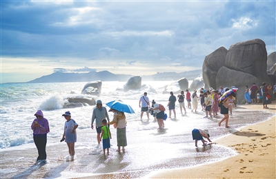 暑期以来,天涯海角因独特的海滨风光和清凉的度假体验,游客接待量持续攀升,尤其是家庭游、亲子游的比例大幅提高。海南日报全媒体记者 王程龙 摄