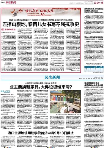高举的旗帜、战斗的号角、烈士的长枪,将人们记忆一下子拉回到80多年前。白沙黎族自治县委史志编纂中心相关负责人介绍,在日伪军的血腥镇压和疯狂“扫荡”下,1941年,七坊、光雅两乡抗日救亡运动被迫停止,白沙三区人民的抗日斗争进入低潮。