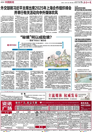 刘彬表示,2025年上合组织峰会将于8月31日至9月1日在天津市举行。这是中国第五次主办上合组织峰会,也是上合组织成立以来规模最大的一次峰会。届时,习近平主席将同20多位外国领导人和10位国际组织负责人聚首海河之滨,总结上合组织成功经验,擘画上合组织发展蓝图,凝聚“上合组织大家庭”合作共识,推动组织朝着构建更加紧密命运共同体的目标阔步迈进。