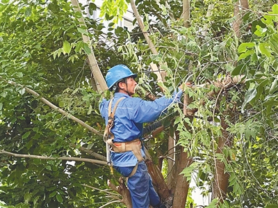 台风来临前,海南电网陵水供电局工作人员在清理线路周边树障。通讯员 刘淳松 摄
