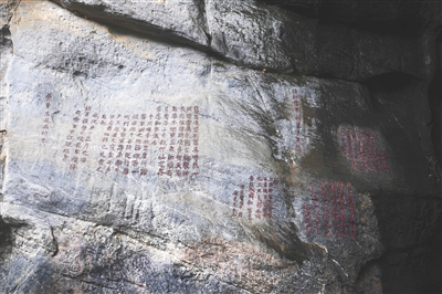 落笔洞内的部分宋代和明代摩崖石刻。 海南日报全媒体记者 王程龙 摄